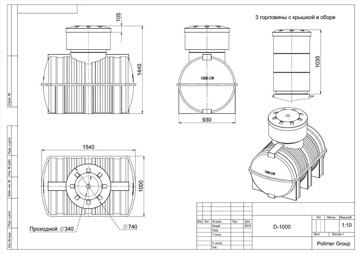 Подземная емкость для воды Polimer Group D 1000