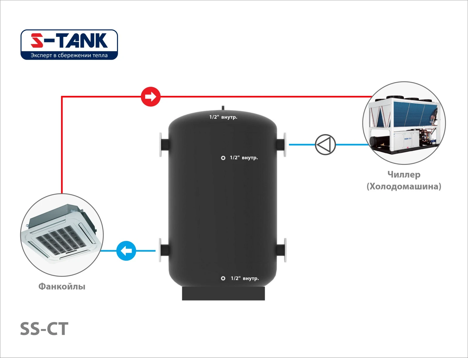 Хладоаккумулятор из нержавеющей стали S-Tank CT SS 300, габариты 1555x500/540 мм, Беларусь, гарантия 24 месяца