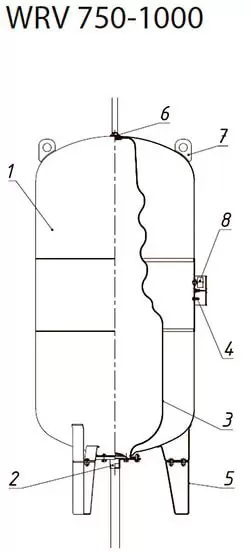Мембранный расширительный бак для отопления Wester WRV 1000, напольный, вертикальный, подключение 1 1/4˝ (ВР), Россия, гарантия 2 года