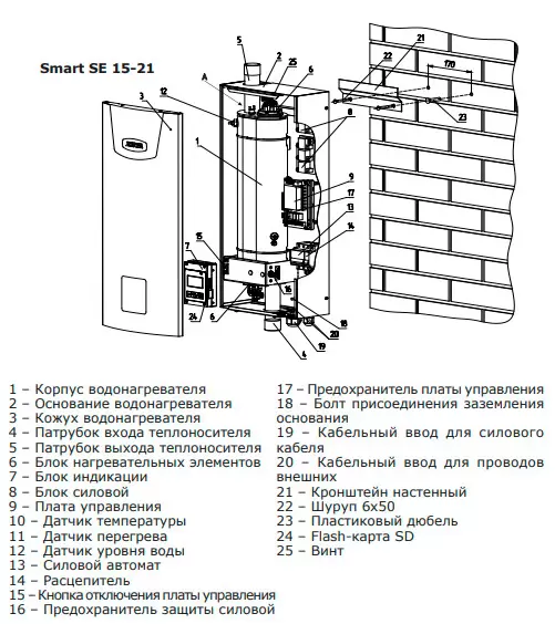 Электрокотел для отопления Zota Smart SE 18 укомплектован подогозависимым управлением, датчиком воздуха, хронотермостатом