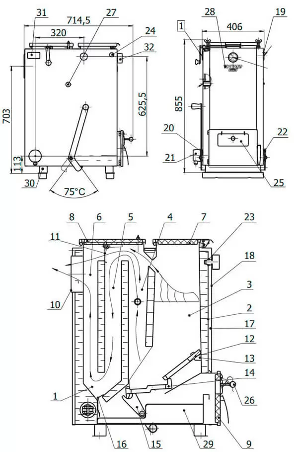 | Тип отопительного котла | твердотопливный |
