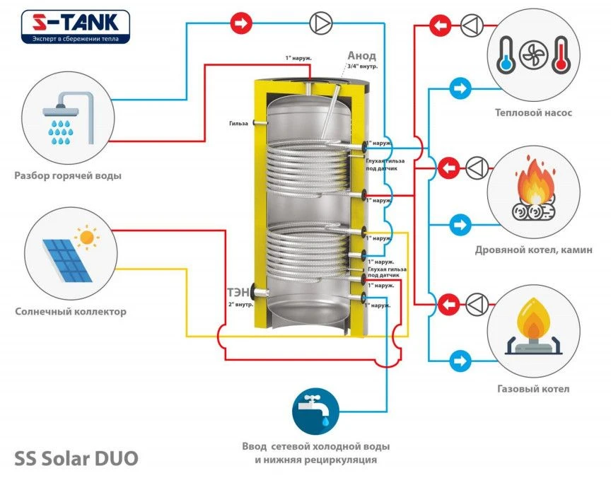 Бойлер косвенного нагрева S-tank DUO SS 750