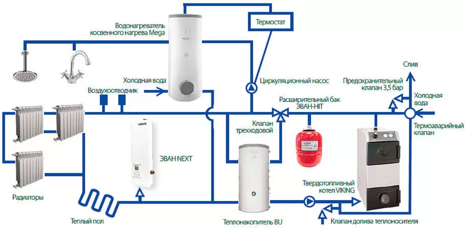 Подстраховать от подобных отрицательных явлений призвана принудительная циркуляция теплоносителя с температурой не ниже +3°C. Это обеспечивается дополнительными нагревательными устройствами. Или, другими словами, резервным теплогенератором.