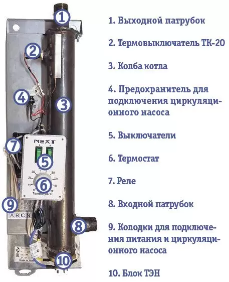 Котёл изготавливается из металла, выпущенного по нормативам ГОСТ. Для ТЭНов используется высококачественная конструкционная нержавеющая сталь – подобными элементами комплектуются котлы в более дорогом ценовом сегменте.