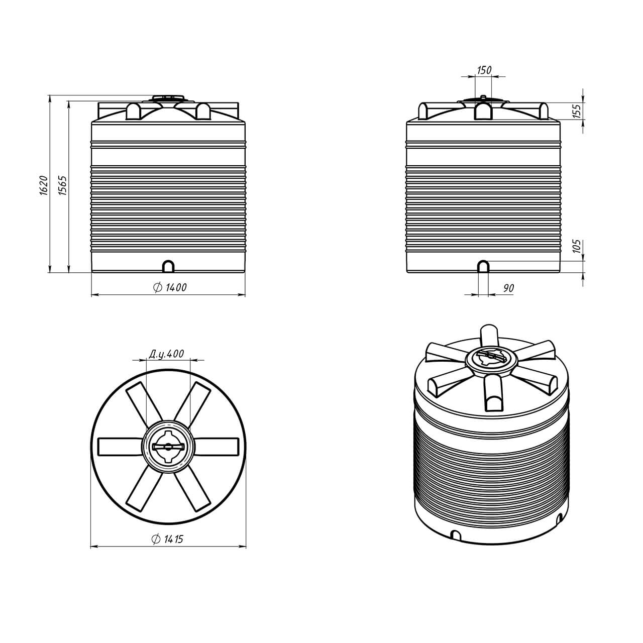 Пластиковая емкость для хранения воды Экопром ЭВЛ 2000, габариты 1780x1450, форма цилиндрическая, цвет синий, расположение вертикальное, Россия, гарантия 1 год