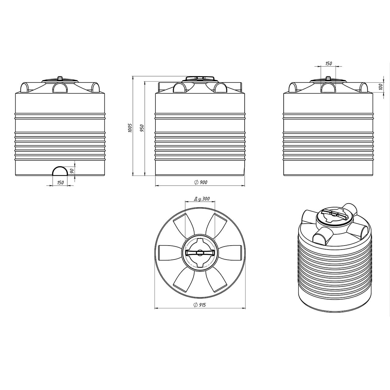 Пластиковая емкость для хранения воды Экопром ЭВЛ 500, габариты 960x900, форма цилиндрическая, цвет синий, расположение вертикальное, Россия, гарантия 1 год