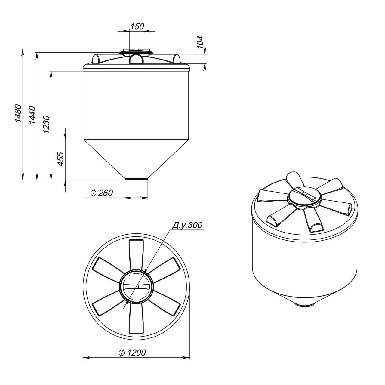 Пластиковая емкость для воды Экопром ФМ 1000, габариты 1480x1180, форма конусообразная, цвет белый, расположение вертикальное, Россия, гарантия 1 год
