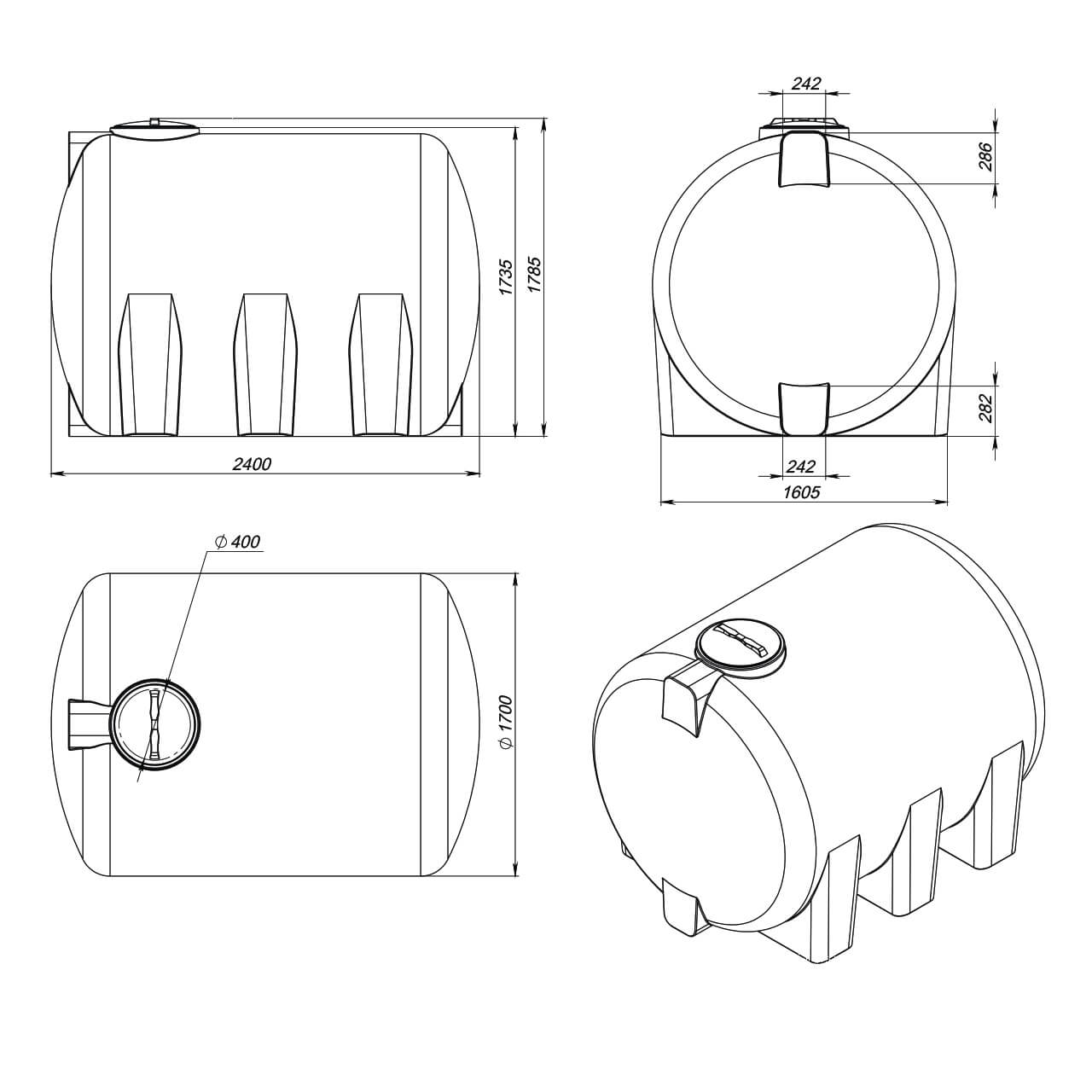 Общая информация Модель H 5000 Форма цилиндрическая Расположение горизонтальное Цвет синий Гарантия, лет 1 Технические характеристики Объем, л 5000 Температурный режим эксплуатации, °C от -30 до +60 Тип эксплуатации наземная Размеры и масса Вес, кг 132 Габариты (ВхШхД), мм 1735x 1685x2340 Диаметр горловины, мм 400 Комплектация и встроенное оборудование Технический слив нет Дополнительная информация Материал полиэтилен Модель крышки с дыхательным клапаном Информация о производителе Торговая марка Экопром Страна Россия -
