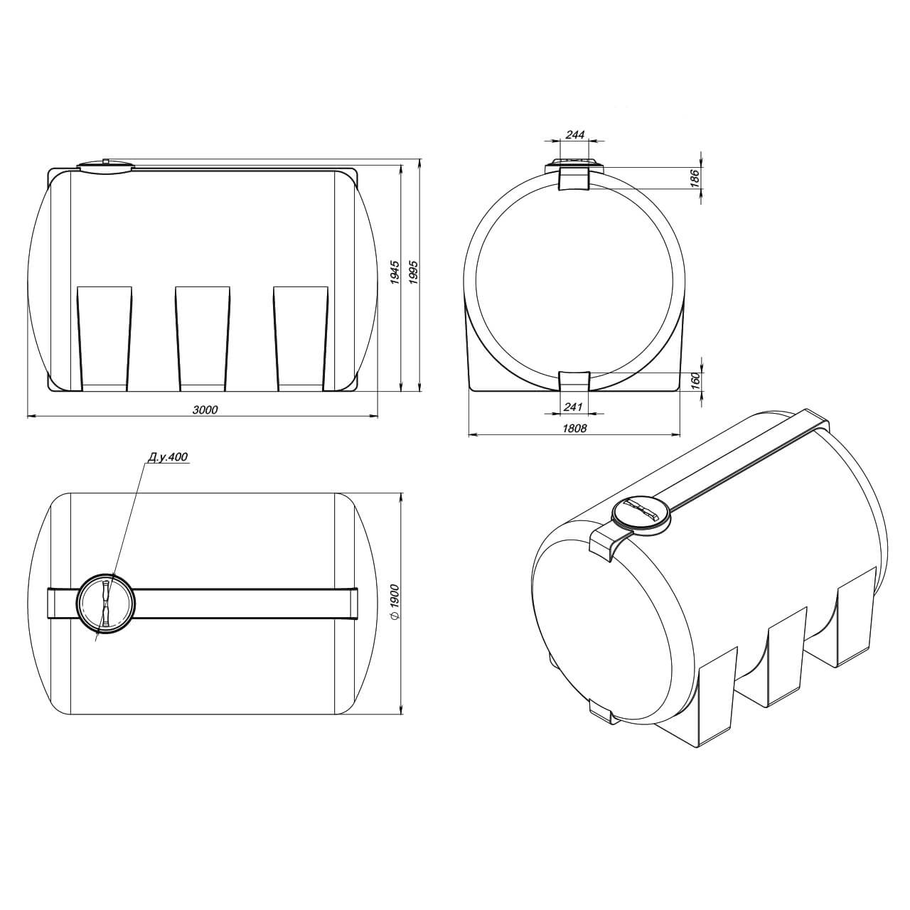 Общая информация Модель H 8000 Форма цилиндрическая Расположение горизонтальное Цвет синий Гарантия, лет 1 Технические характеристики Объем, л 8000 Температурный режим эксплуатации, °C от -30 до +60 Тип эксплуатации наземная Размеры и масса Вес, кг 200 Габариты (ВхШхД), мм 1977x1900x3000 Диаметр горловины, мм 400 Комплектация и встроенное оборудование Технический слив нет Дополнительная информация Материал полиэтилен Модель крышки с дыхательным клапаном Информация о производителе Торговая марка Экопром Страна Россия -
