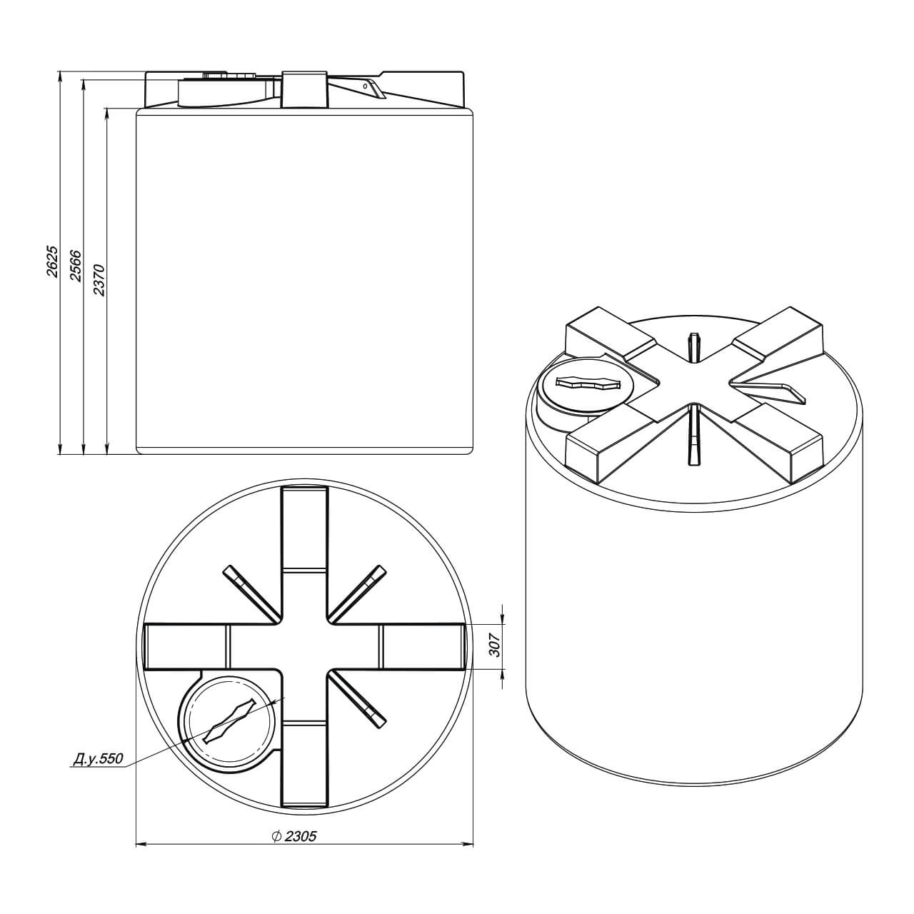 Пластиковая емкость для воды Экопром T 10000, габариты 2630x2305, форма цилиндрическая, цвет синий, расположение вертикальное, Россия, гарантия 1 год