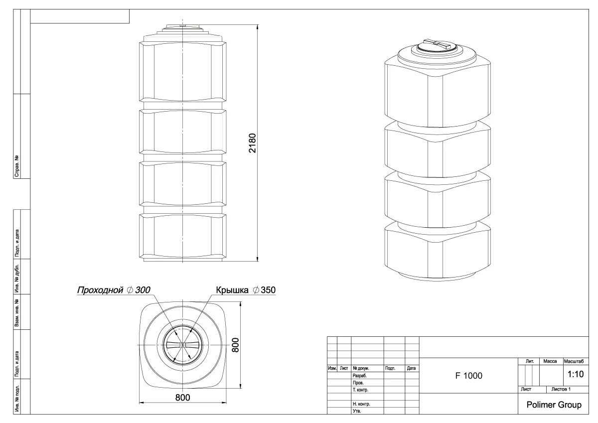 Емкость для воды вертикальная Polimer Group F 1000 прямоугольная, наземная, габариты 2177x800x800, Россия, гарантия 1 год