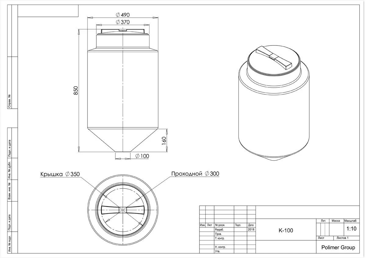 Конусная пластиковая емкость Polimer Group К 100