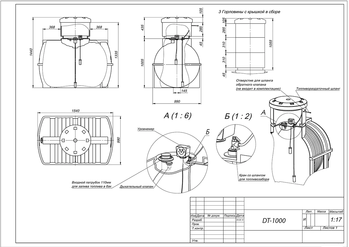 Общая информация Модель DT 1000 Форма цилиндрическая Расположение горизонтальное Гарантия, лет 1 Технические характеристики Температурный режим эксплуатации, °C от -30 до +60 Тип эксплуатации подземная Размеры и масса Вес, кг 62.00 Габариты (ВхШхД), мм 1440х990х1540 Диаметр горловины, мм 600 Дополнительная информация Материал полиэтилен Дополнительные опции Укомплектована системой подачи топлива Информация о производителе Торговая марка Polimer Group Страна Россия -