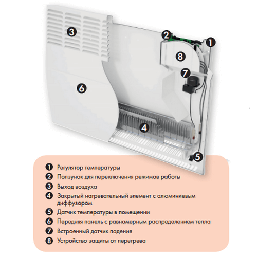 Конвектор электрический Atlantic F119 1500W, габариты (ВхШхГ): 461х613х114, электронное управление, программа поддержания плюсовой температуры, класс защиты IP25, Франция, гарантия 5 лет