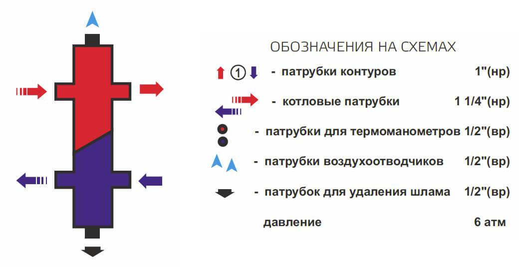 Гидроразделитель универсальный Zota, 1 контур, до 50 кВт