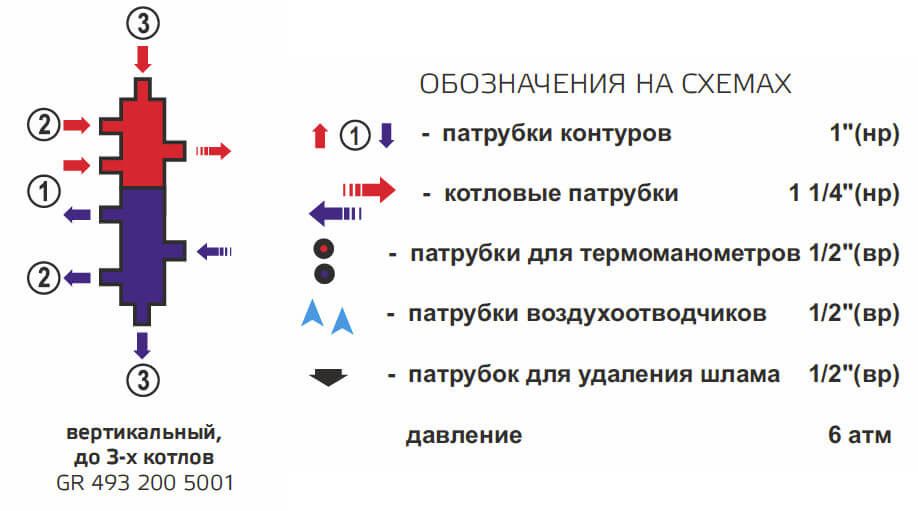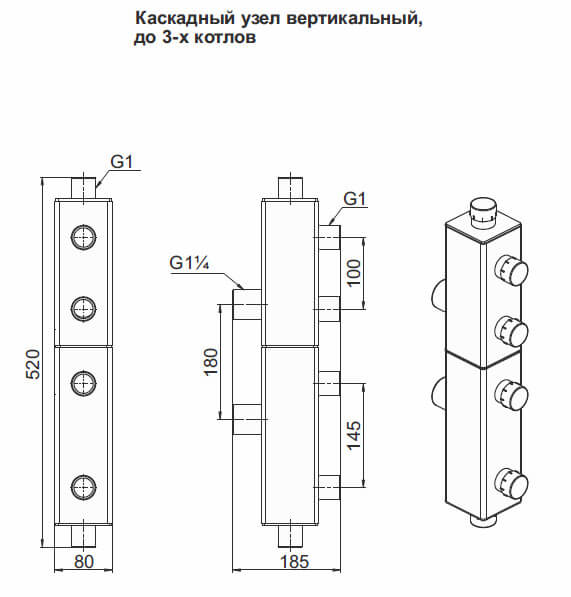 Каскадный узел Zota, вертикальный, до 3-котлов