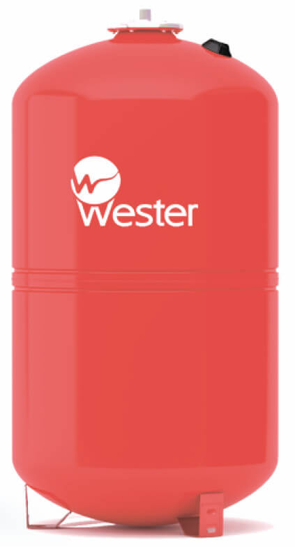 Мембранный расширительный бак для отопления Wester WRV 150, напольный, вертикальный, подключение 1˝ (НР), Россия, гарантия 2 года