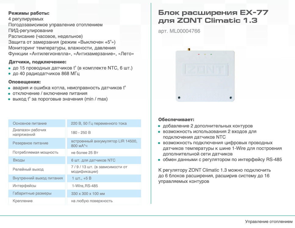 Блок расширения EX-77 для регулятора Zont Climatic 1.3