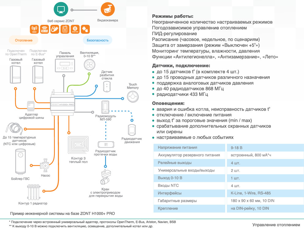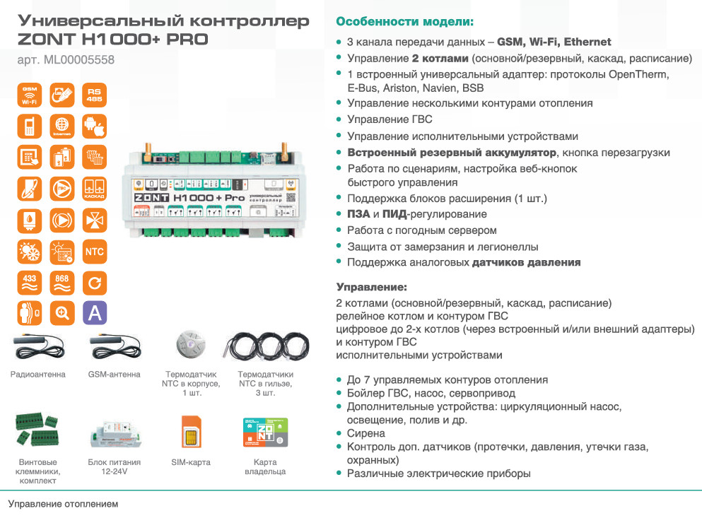 Контроллер ZONT H1000+ PRO обладает широким функционалом и подходит для: