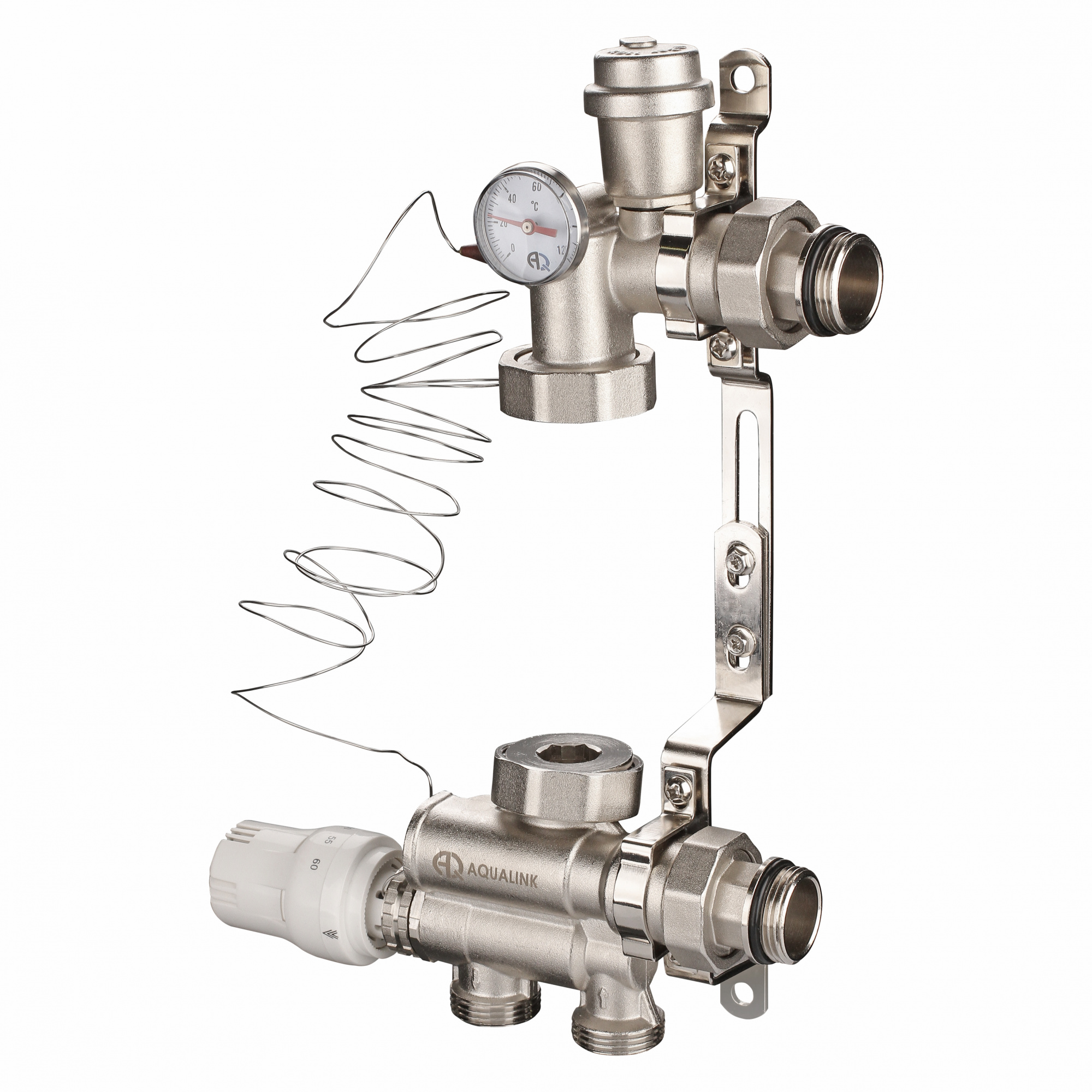 Изделие поставляется без циркуляционного насоса. Для надежной и долгосрочной эксплуатации насосно-смесительного ущла при его монтаже рекомендуется использовать оригинальные комплектующие и циркуляционные насосы торговых марок Aqualink и Aquario.