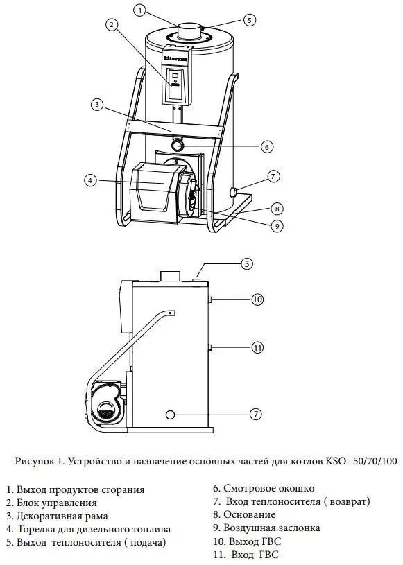 Котел дизельный отопления Kiturami KSO-70R, напольный, двухконтурный, мощность 81,4 кВт, Ю. Корея, 12 месяцев