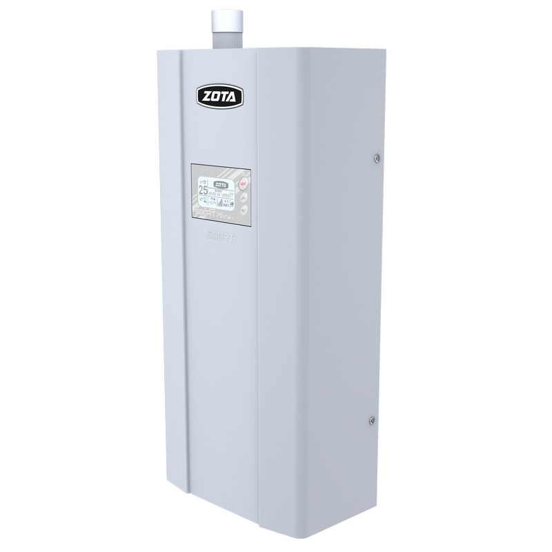 Электрический котел Zota Smart 36 укомплектован GSM-модулем, подогозависимым управлением, датчиком воздуха, хронотермостатом