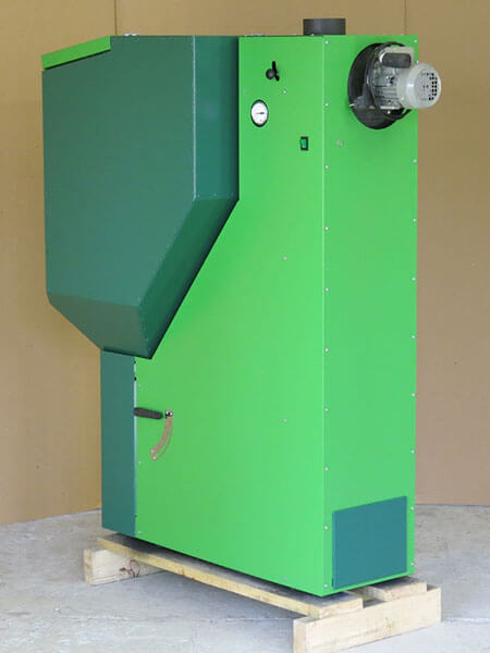 - Навесной герметичный бункер объемом 150 литров. Навесная конструкция делает котел очень компактным и удобным в установке.