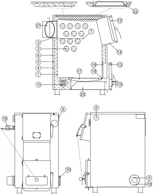 Котел пеллетный Теплодар Куппер ОК-9 с пеллетной горелкой Комфорт-26, мощность 9 кВт, глубина топки 320 мм, объем бункера 350 л, в комплекте с ТЭН, гарантия 3 года, Россия