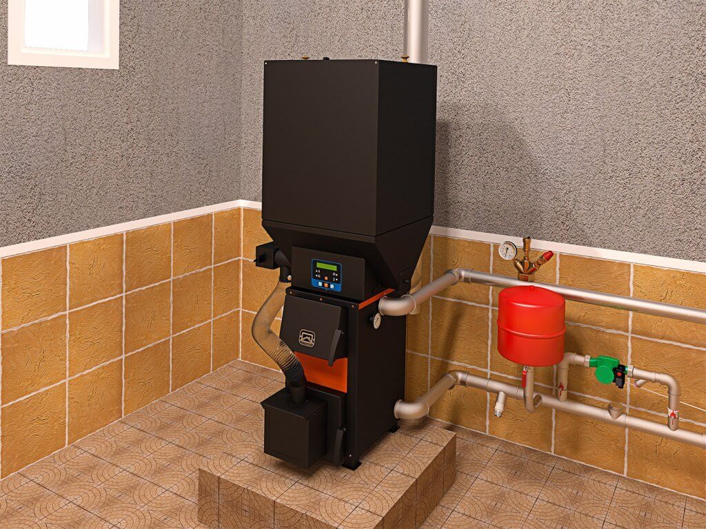 Пеллетный котел Куппер ОК-9 с пеллетной горелкой Комфорт-26 и бункером 350 л