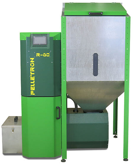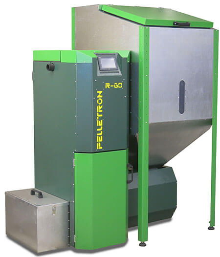 Автоматический пеллетный котел Pelletron Royal 60 II, КПД 95 %, объем бункера 600 л, двухшнековая система подачи пеллет, масса 360 кг, габариты 1700x1400x1000 мм, Россия, гарантия 2 года