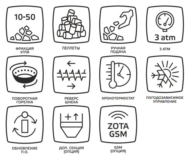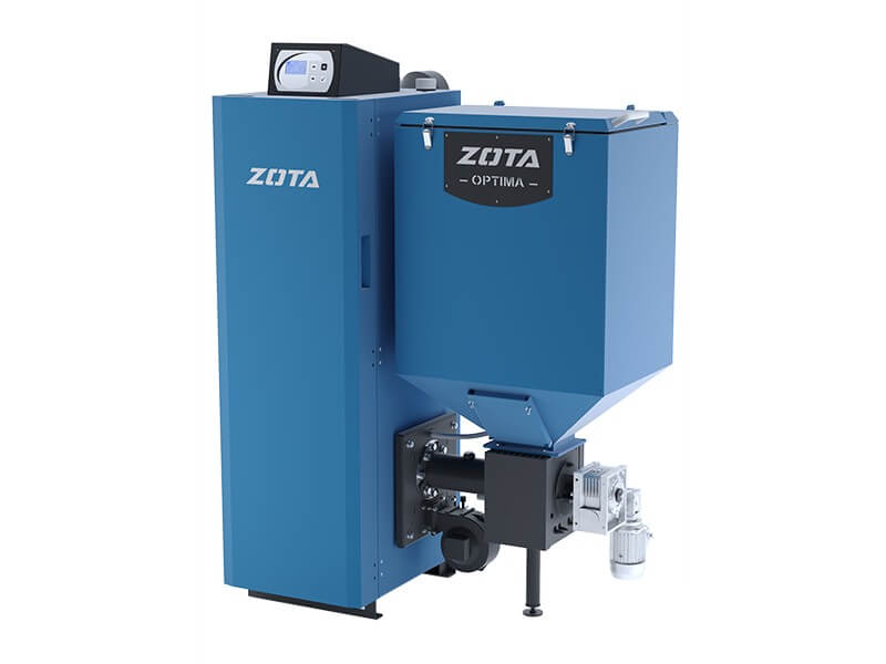 Универсальный отопительный автоматический котел Zota Optima 15 с вращающейся ретортной горелкой (пеллеты, уголь, дрова, брекеты), Россия, гарантия 12 месяцев
