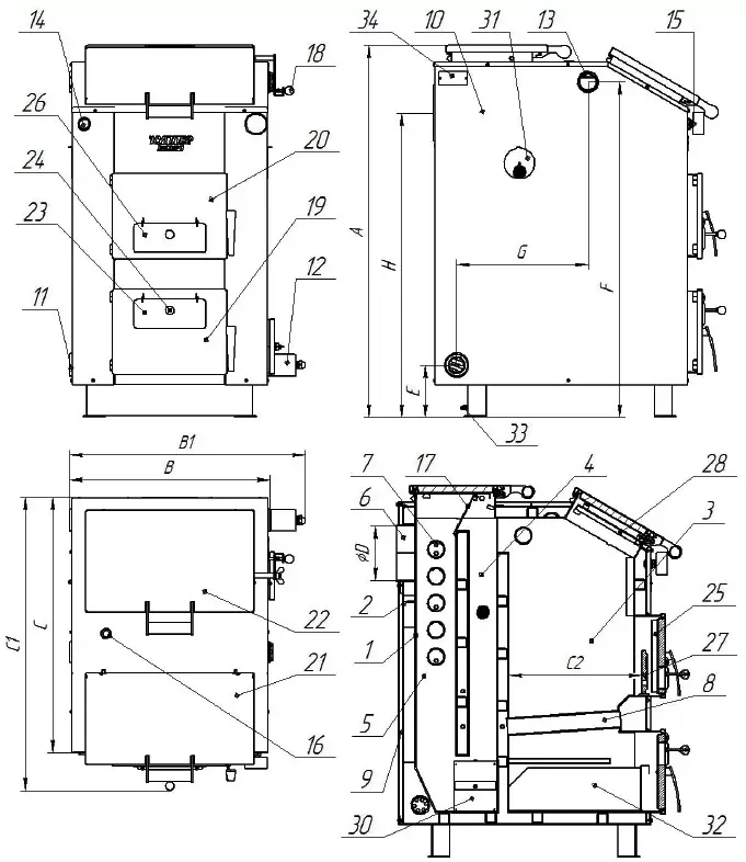 - Шахта загрузочная (топочная).
