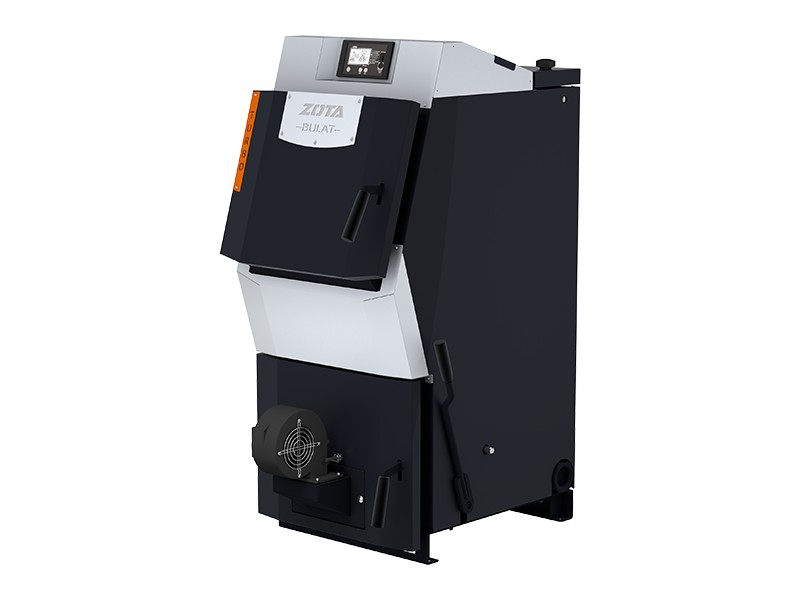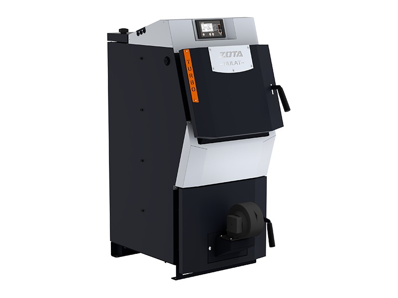 Котел твердотопливный длительного горения Zota Bulat Turbo 37, КПД 80%, объем топочной камеры 150, глубина топки 420, габариты 1390x585x1191, масса 275, гарантия 12 месяцев