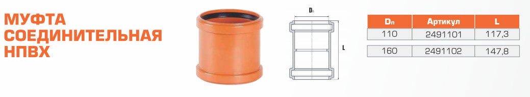 Муфта ремонтная для наружной канализации НПВХ 400