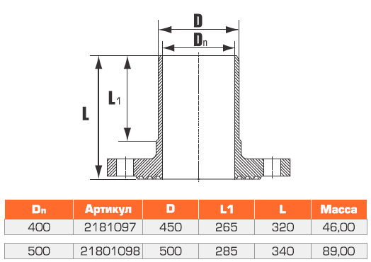 Патрубок напорный гладкий с металлическим фланцем FW 400