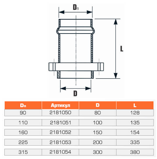 Патрубок напорный чугунный раструбный с фланцем UR-Cast 400
