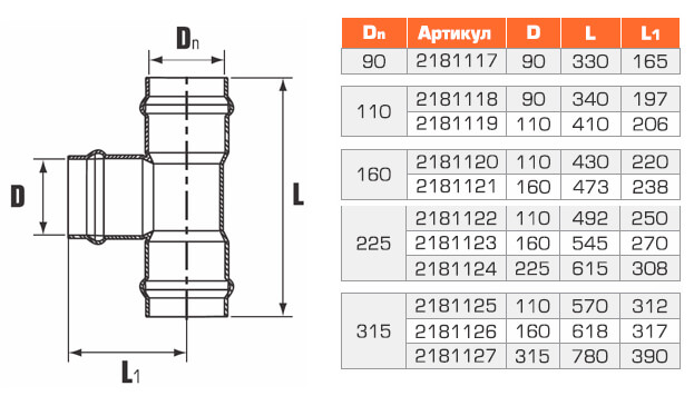 Тройник напорный трехраструбный НПВХ 160x160/90*