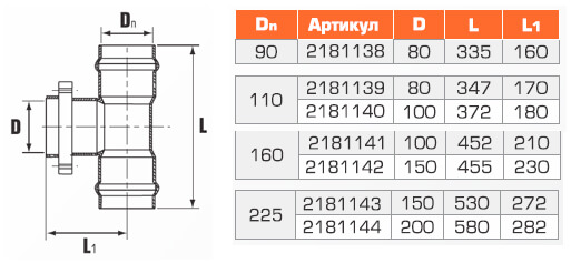 Тройник напорный с металлическим фланцем 90x80