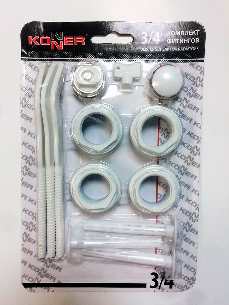 Набор комплектующих для радиатора 3/4" Konner, с кронштейнами