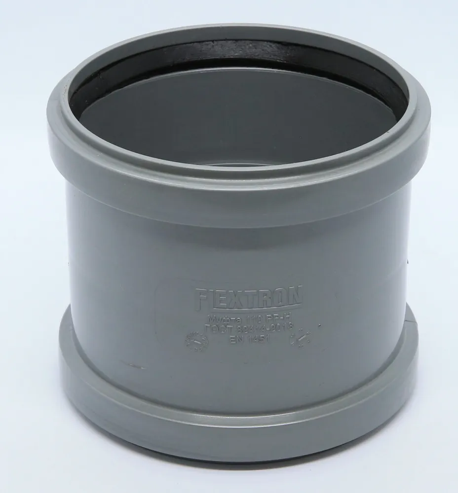 Муфта двухрастраструбная с упором для внутренней канализации ПП 110 мм Flextron