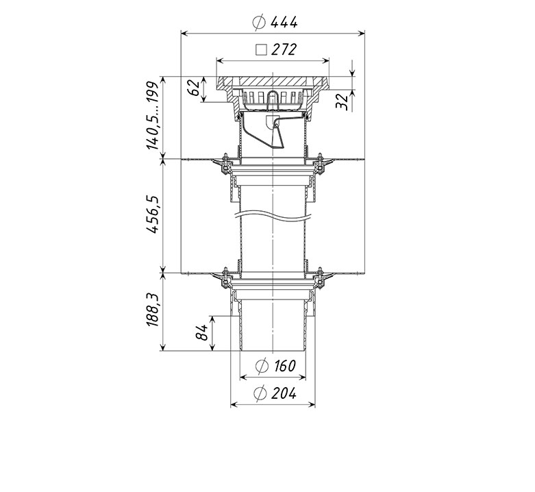 Кровельная воронка ТП-10.616.1 двухуровневая D=160 мм, H=450 мм с листвоуловителем и прижимными фланцами
