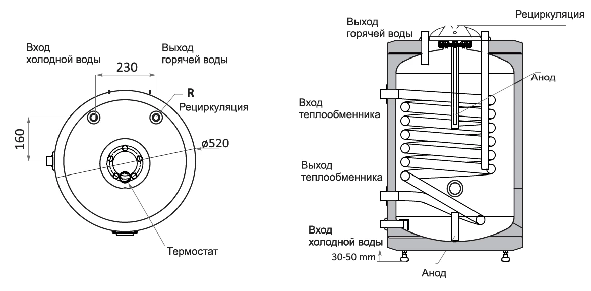 Общая информация Модель BB 200 V/S1 UP Тип установки напольный Тип бойлера со змеевиком Емкость, л 200 Материал внутреннего бака титановая эмаль Гарантия, лет 5 Технические характеристики Производительность змеевика при 70/10/45, л/ч 349.1 Рабочее давление, атм 16 Мощность змеевика, кВт 14.4 Площадь змеевика, м² 0.77 Подключение Тип подключения ТЭН резьбовое Диаметр подключения водоснабжения, дюйм 3/4" Диаметр подключения теплообменника, дюйм 1 Размеры и масса Вес, кг 82 Габариты (ВхД), мм 1335 x 520 Комплектация и встроенное оборудование Теплоизоляция есть Термометр есть ТЭН дополнительная опция Материал теплоизоляции жесткий полиуретан Предохранительный клапан есть Рециркуляционный патрубок есть Дополнительная информация Дополнительные опции терморегулятор для управления насосом Информация о производителе Торговая марка Sunsystem Страна Болгария -