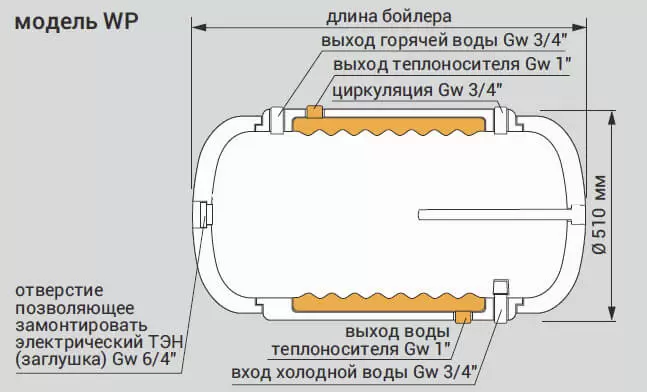 Косвенный водонагреватель Kospel WP-120, настенный, горизонтальный, с водяной рубашкой, Польша, гарантия 2 года