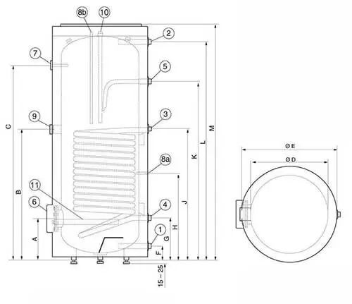Водонагреватель для горячего водоснабжения с одним змеевиком. Установка вертикальная, легко установить, безопасный ,простой в использовании.