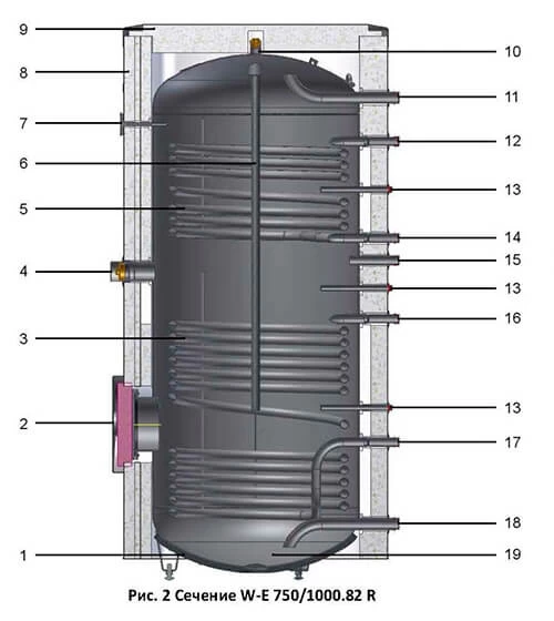 Водонагреватель косвенного нагрева Nibe Mega W-E 750.82, напольный, с 2 змеевиками, Швеция, гарантия 5 лет